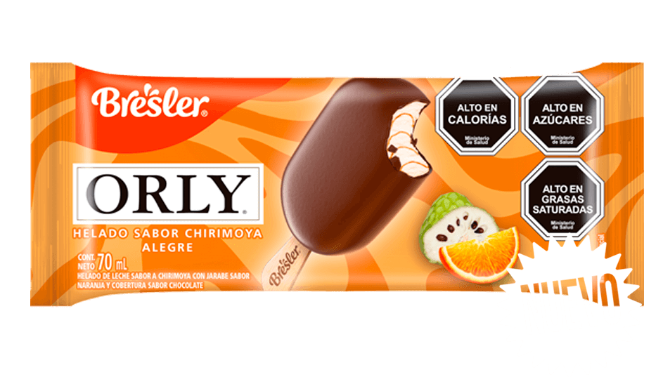 Helado de leche sabor a chirimoya con helado de agua sabor a naranja.